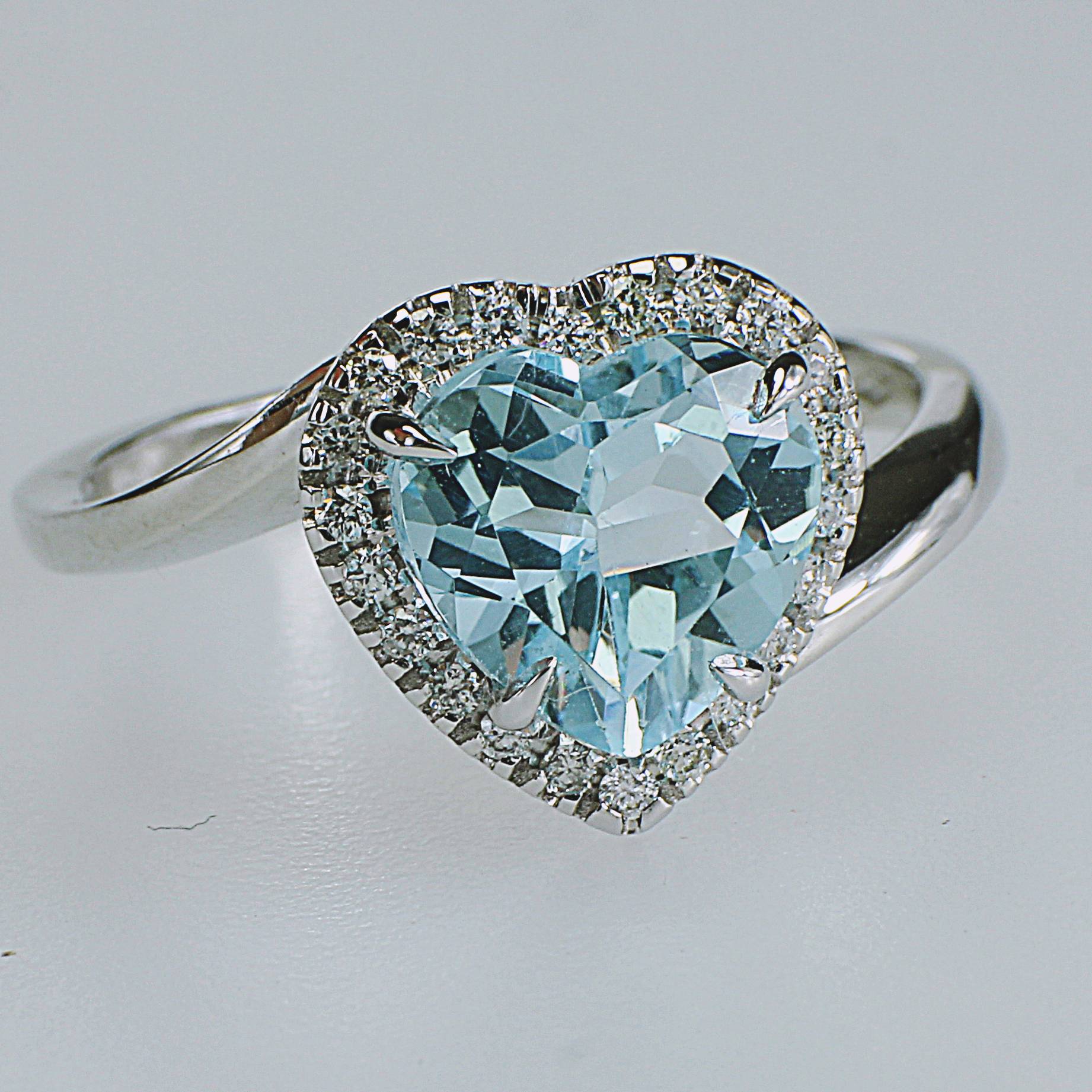 ANELLO IN ORO TITOLO 750°°° CON DIAMANTI KT 0,18 COLORE G PUREZZA VS E ACQUA MARINA KT 1,90
