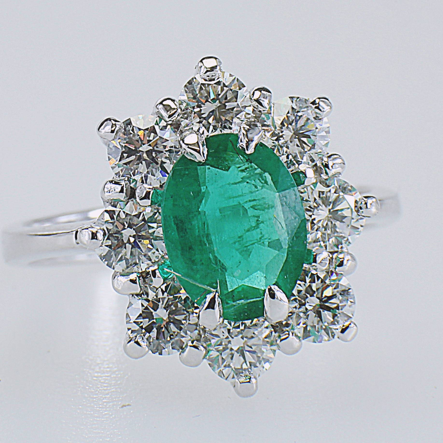 ANELLO IN ORO TITOLO 750°°° CON DIAMANTI KT 1,15 COLORE G PUREZZA VS E SMERALDO KT 1,16