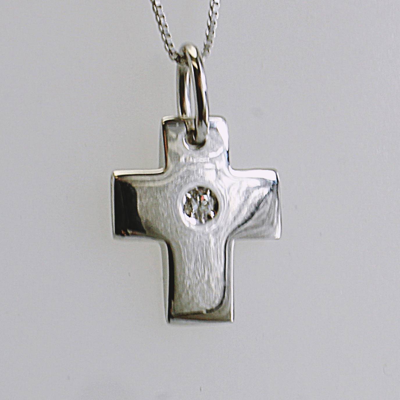 COLLANA CROCE IN ORO TITOLO 750°°° CON DIAMANTE KT 0,03 COLORE G PUREZZA VS