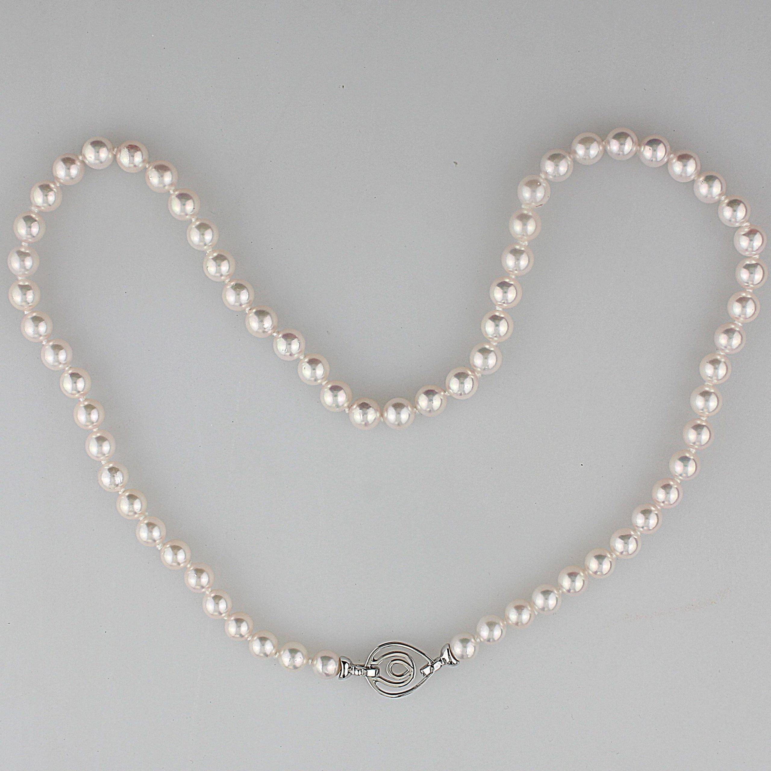 COLLANA IN ORO BIANCO TITOLO 750/°°° CON PERLE COLTIVATE Diam. 6,5/7