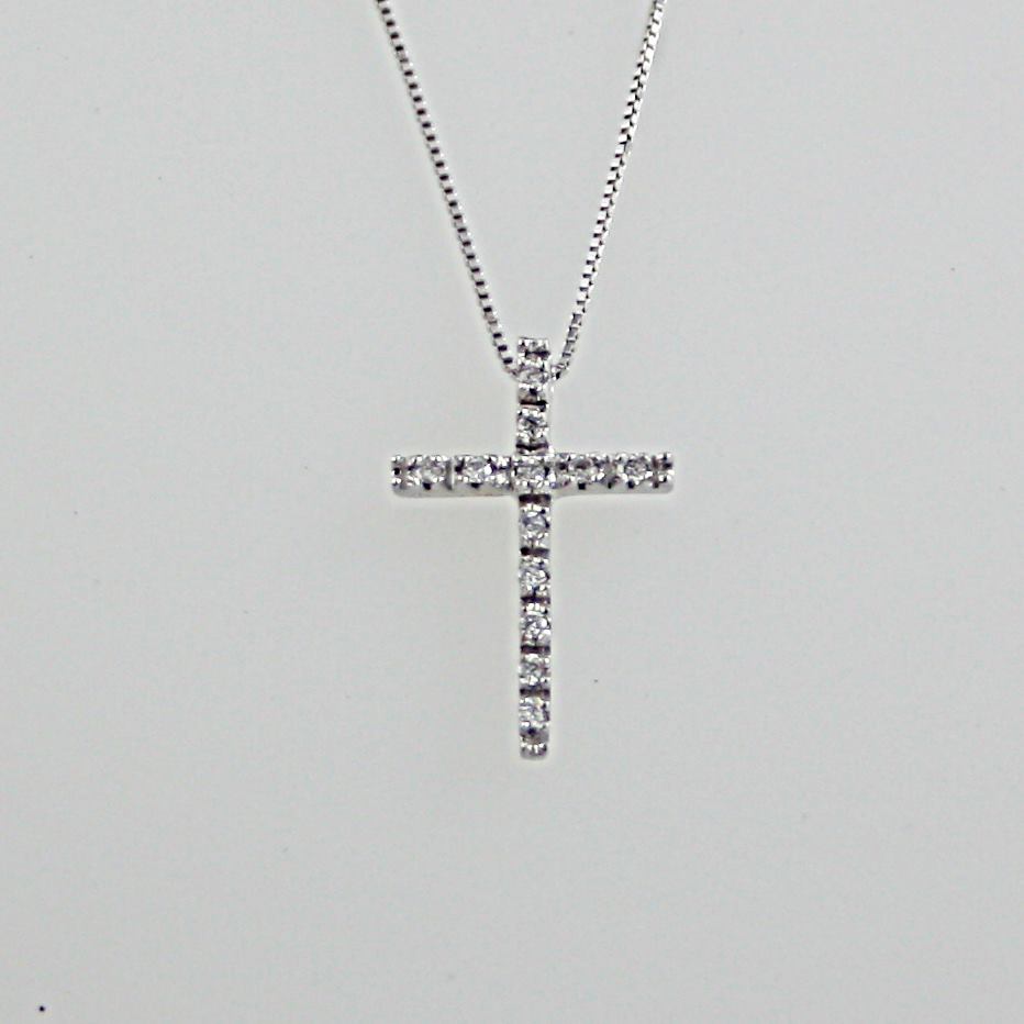 COLLANA “CROCE” IN ORO BIANCO TITOLO 750/°°° E DIAMANTI KT 0,12 G VS
