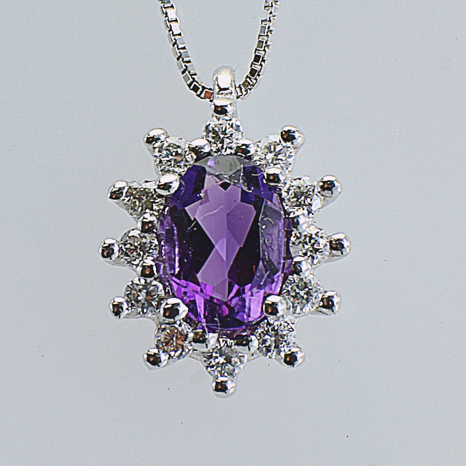 COLLANA IN ORO TITOLO 750°°° CON AMETISTA KT 0.45 E DIAMANTI KT.0.14 COLORE G PUREZZA VS