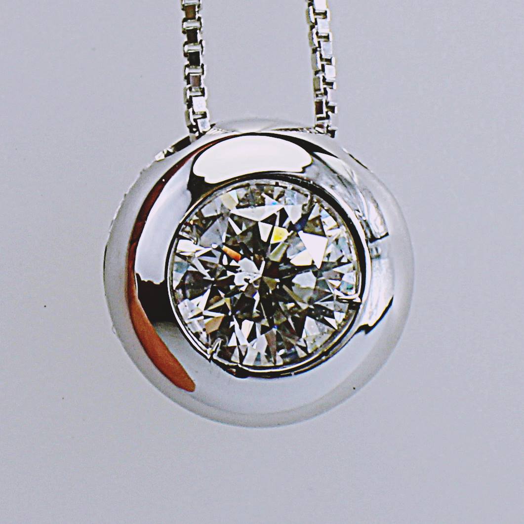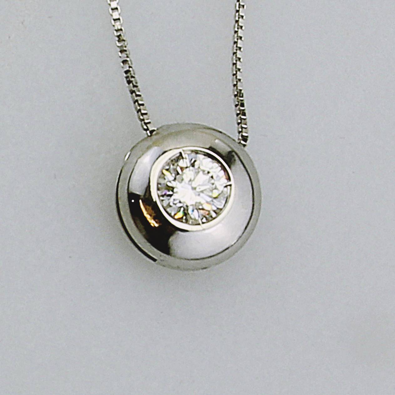 COLLANA PUNTO LUCE IN ORO TITOLO 750°°° CON DIAMANTE KT 0,53 COLORE D PUREZZA S CERTIFICATO I.G.I. 706531375 – ISCRIZIONE LASERSCRIBE DEL NUMERO DI CERTIFICATO SULLA PIETRA.