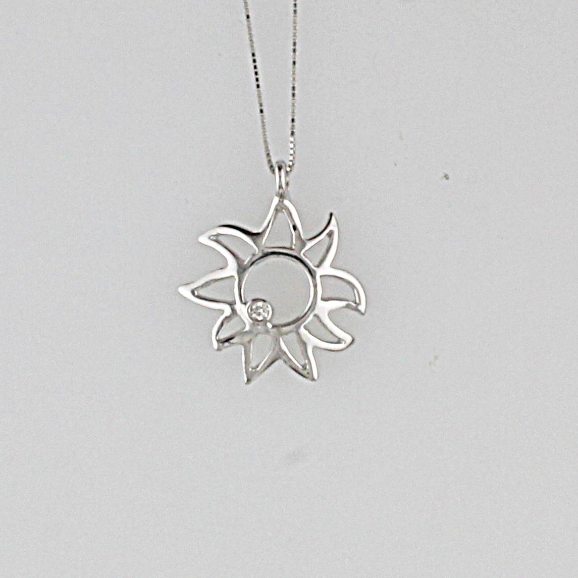 COLLANA SOLE IN ORO BIANCO TITOLO 750/°°° E DIAMANTI KT 0,01 G VS