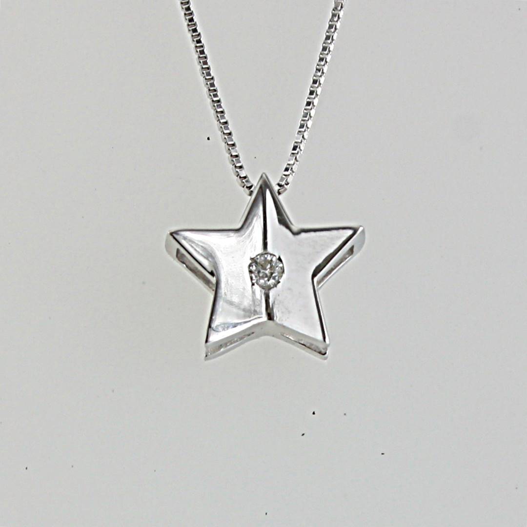 COLLANA STELLA IN ORO TITOLO 750/°°° CON DIAMANTI KT 0,02 COLORE G PUREZZA VS