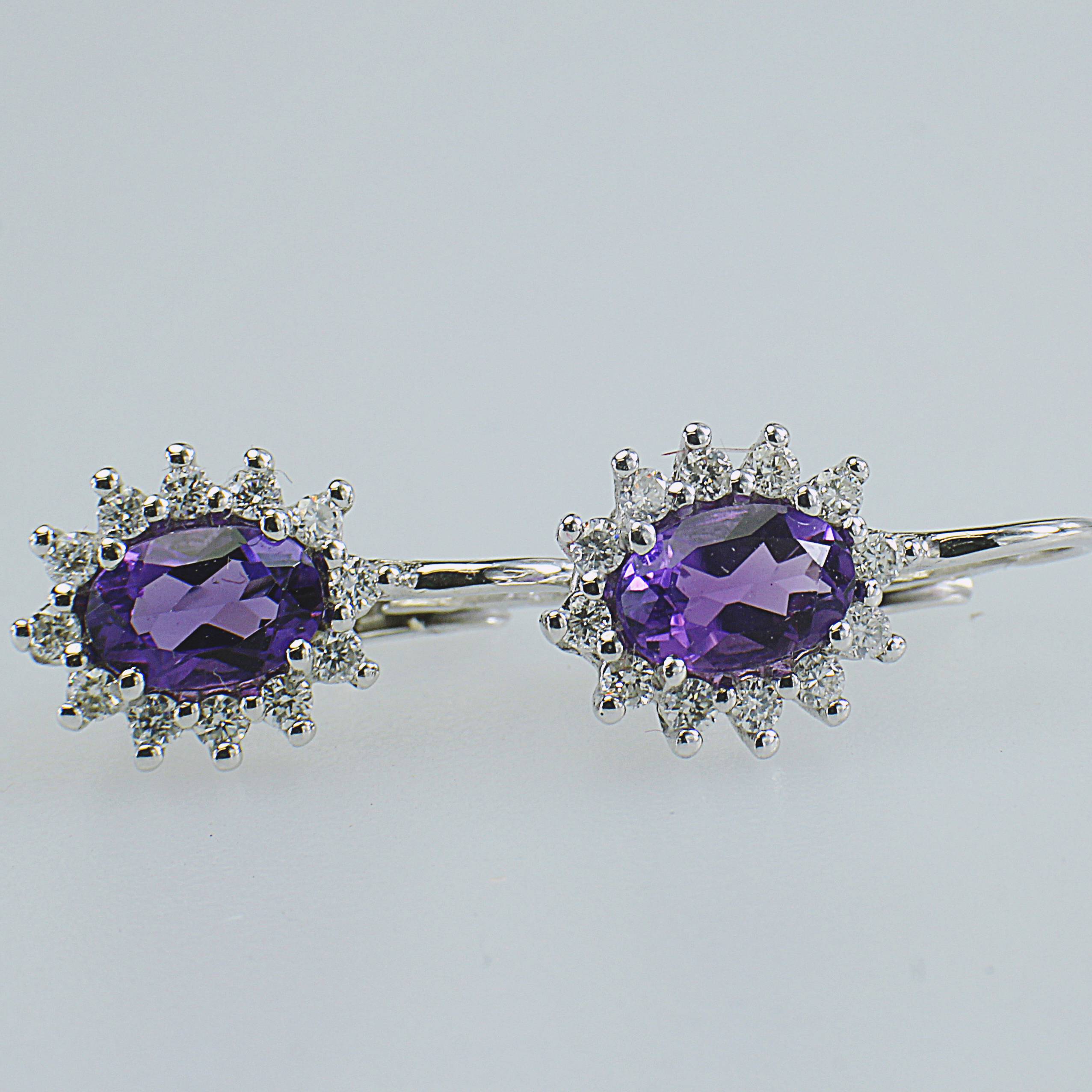 ORECCHINI IN ORO TITOLO 750°°° CON AMETISTA KT 0,45 E DIAMANTI KT 0,14 COLORE G PUREZZA VS